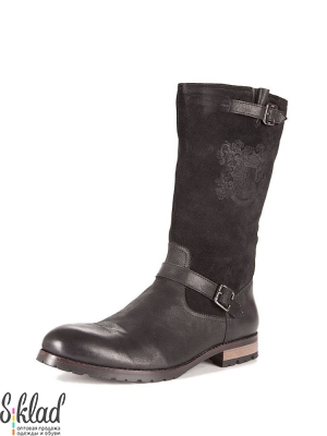 Черные сапоги, декорированы двумя ремешками на металлической застежке